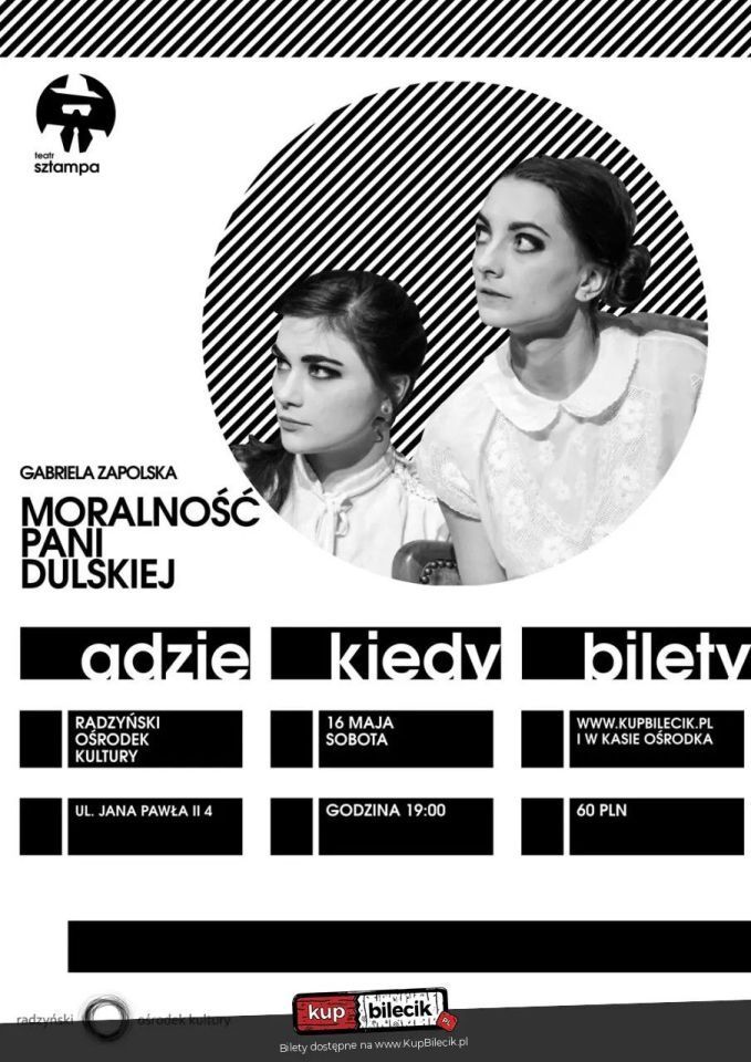 "Na to mamy cztery ściany i sufit, aby brudy swoje prać w domu i aby nikt o nich nie wiedział. Rozwłóczyć je po świecie to ani moralne, ani uczciwe. Ja zawsze tak żyłam, ażeby nikt nie mógł powiedzieć, iż byłam powodem skandalu." Teatr SZTAMPA nie ułatwia poczynań pani Dulskiej i usuwa czwartą ścianę z jej pięknego domu. Pewnie zaskoczy Was aktualność tekstu Gabrieli Zapolskiej, jednak nie gwarantujemy, że wylew kołtuństwa nie sprawi, że chętniej będziecie podsłuchiwać sąsiadów, plotkować czy kłamać. Bilety do nabycia na: KupBilecik.pl